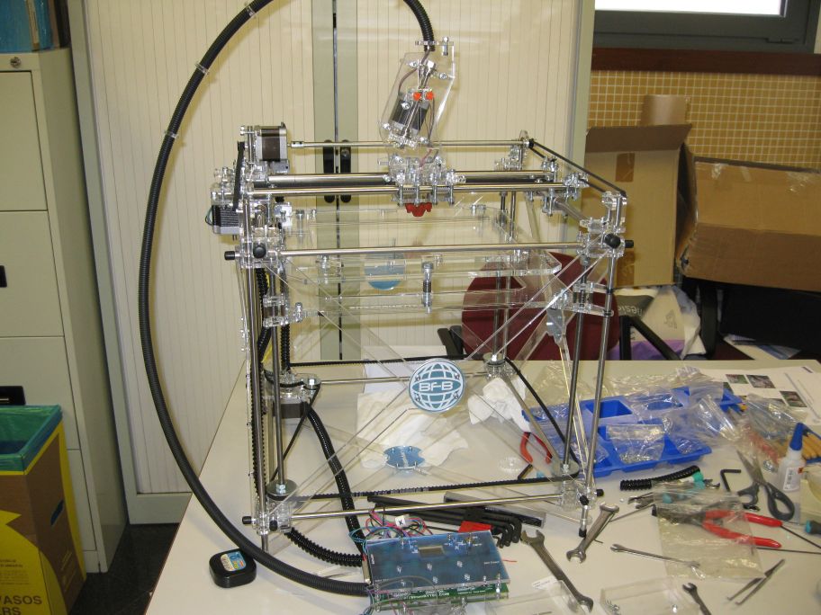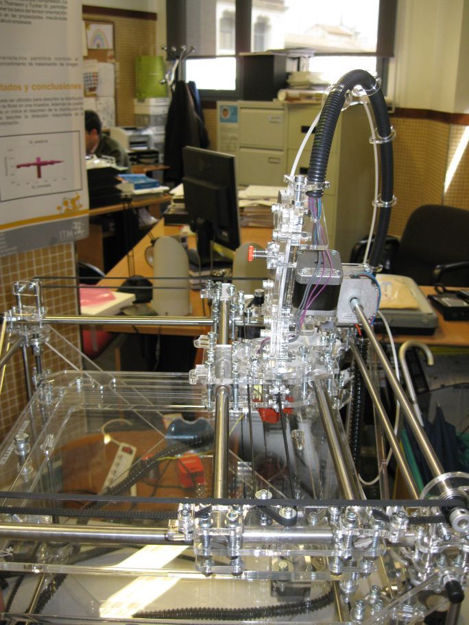 Montaje de la extrusora y el sistema de presión del cabezal.