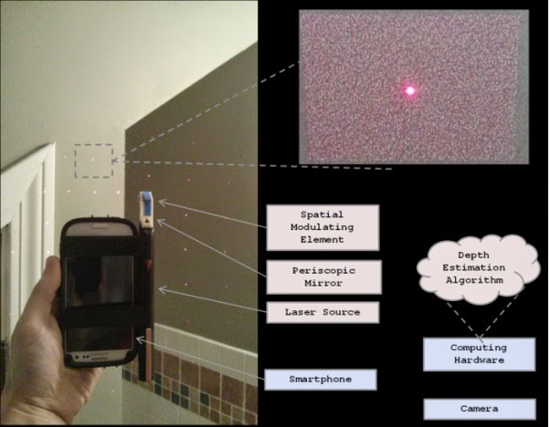Me explico, vemos con dos ojos y la imagen creada es una visión en 3D del mundo real, pero la cámara del smartphone sólo tiene una lente para ver el alto y ancho  de la imagen,  en una interpretación 2D del mundo real. Por lo tanto, para contrarrestar esto LazeeEye hace uso  de un complicado  iluminador  láser para crear una segunda lente virtual.