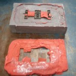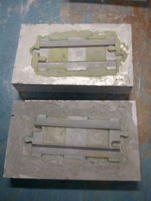 Ya veis como quedan los moldes una vez mecanizados y preparados para colar la segunda parte del molde (hembra).