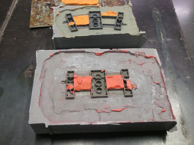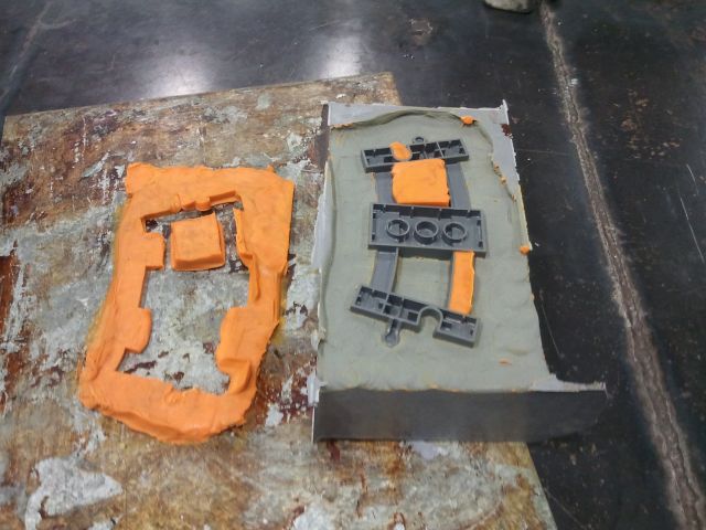 Asi han quedado los moldes de resina. Se ha realizado la colada de la parte del macho que quedaba.