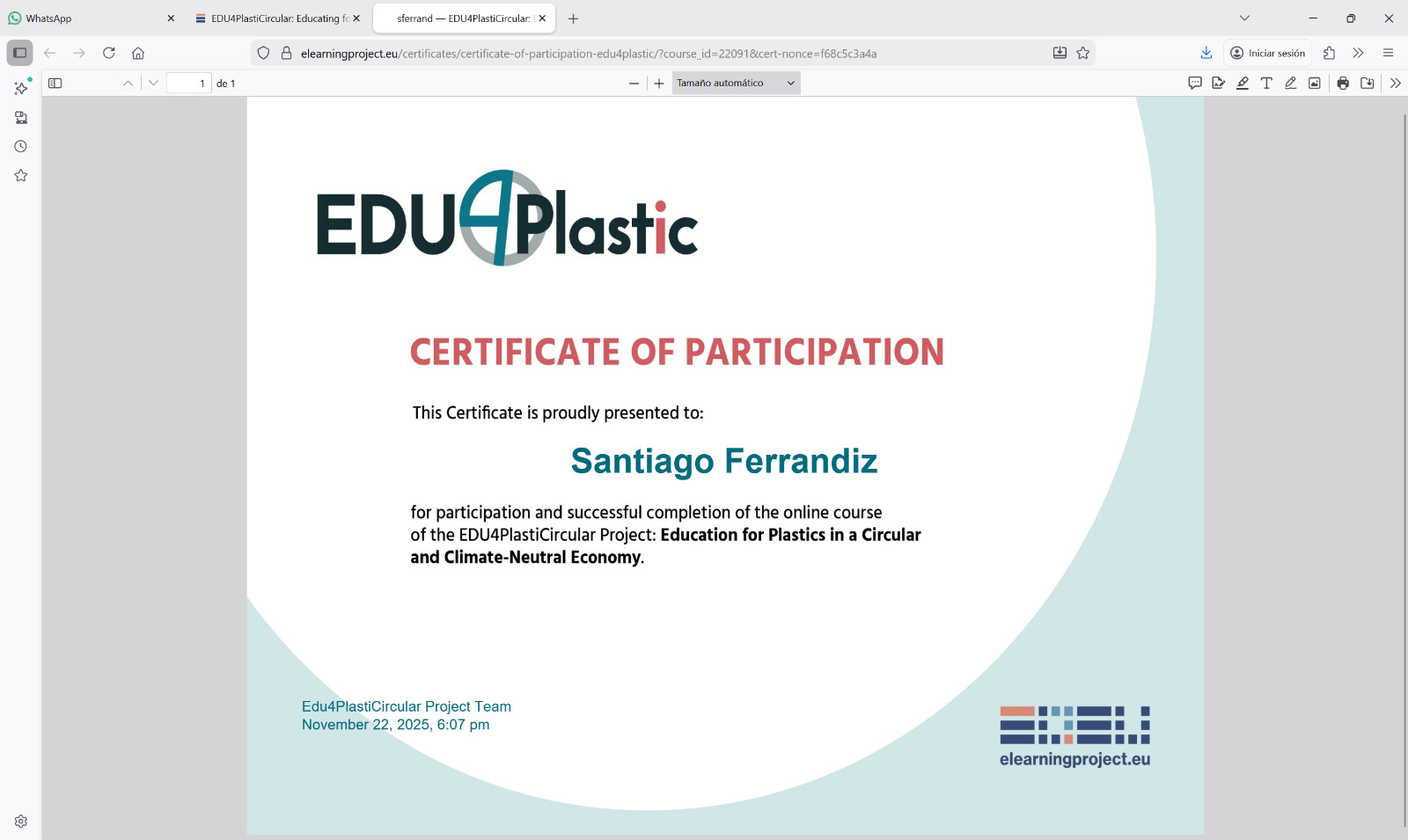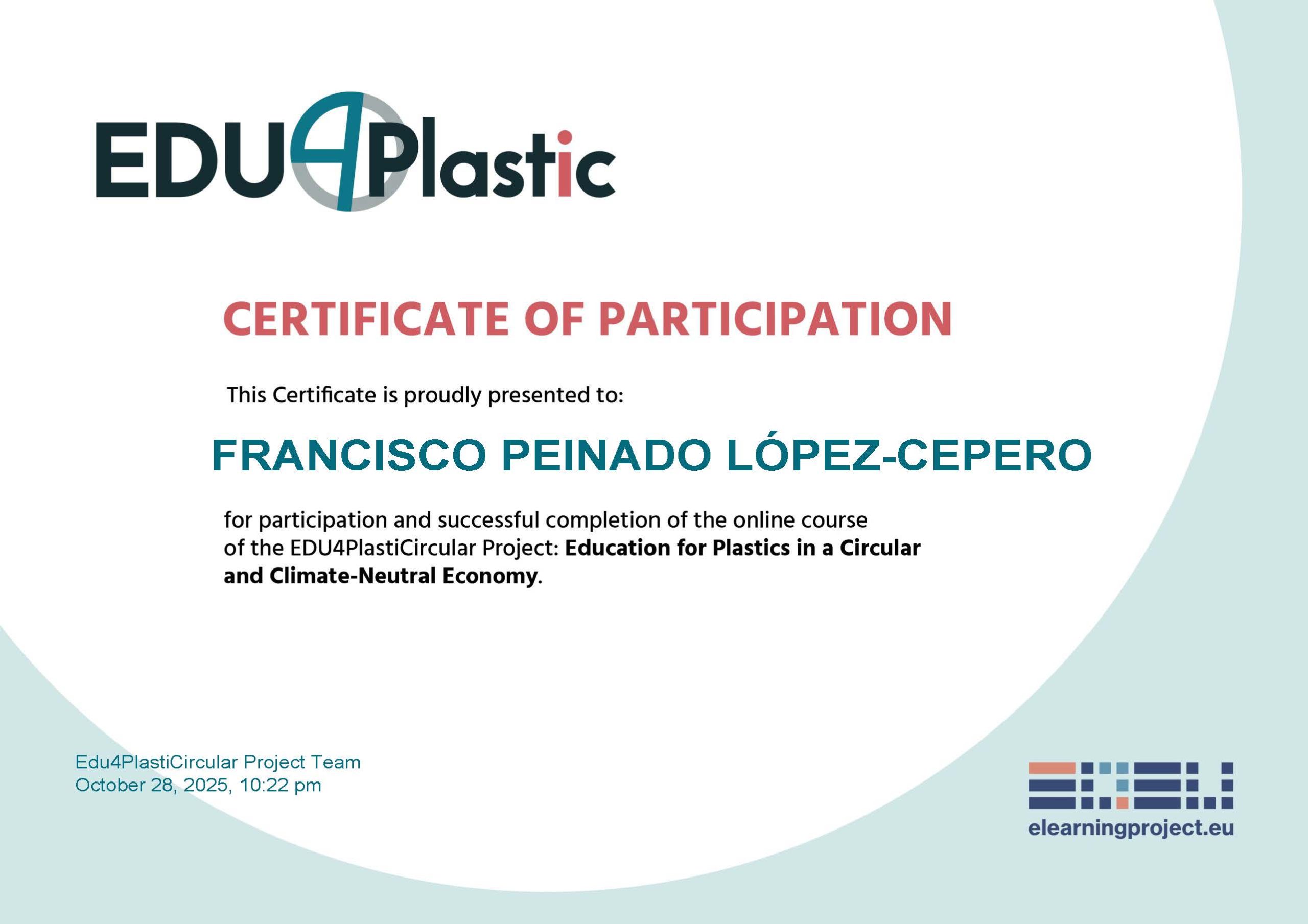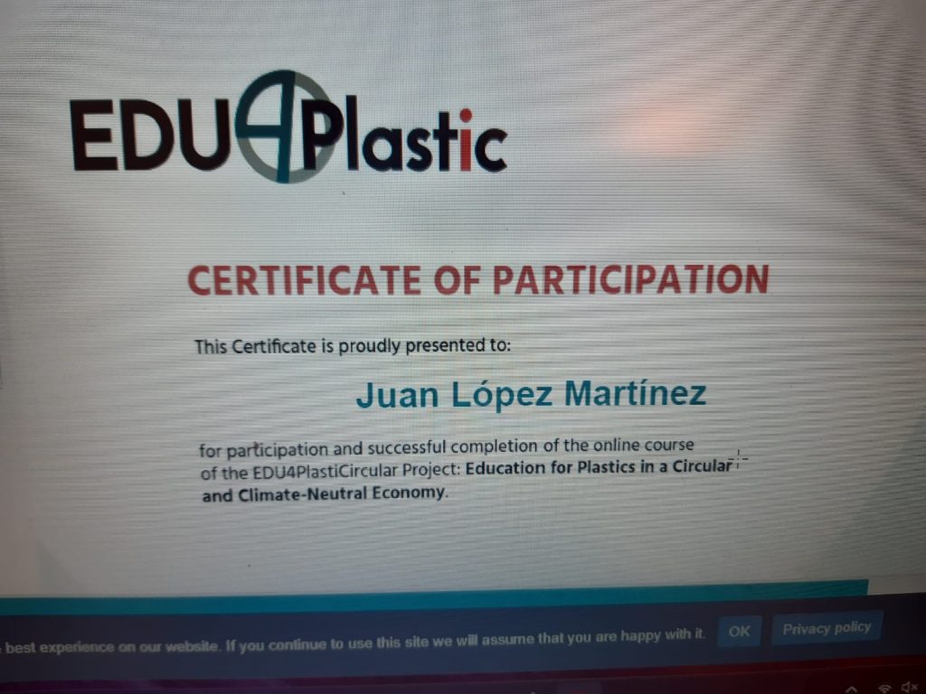 The Spanish teams completed the edu4plastic courses and have obtained the certificate.