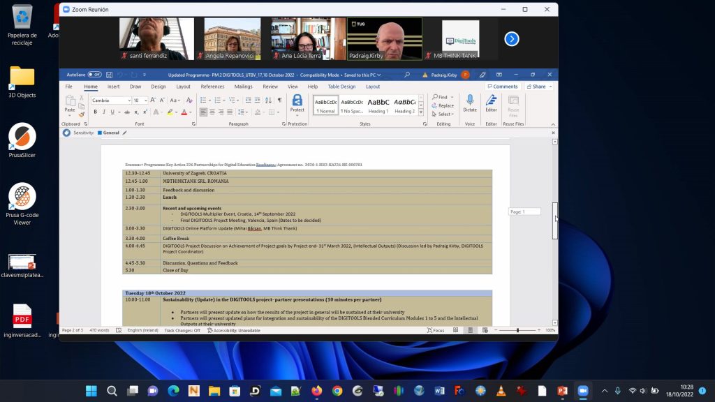 Today October, 18th 2022, keep going the Kick Off Meeting 2022, of the project Innovative Tools for Enhancing E-Learning Solutions in Universities (DIGITOOLS). (Physical and Virtual Meeting). The meeting was hosted by Transilvania University of Brasov at Polytechnical University of Bucharest at Polytechnic University of Bucharest, Central Library, building A, floor 2, room 2.2, 313 Independence Street, Bucharest, sector 6