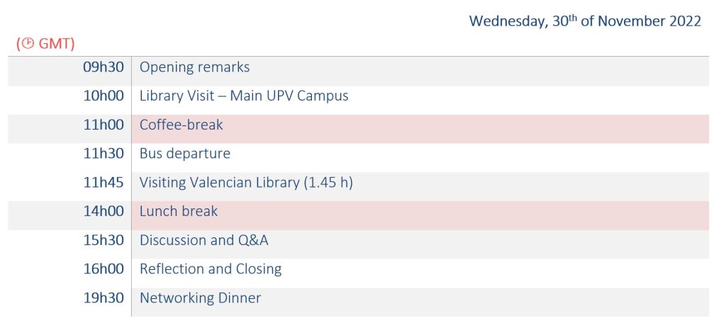 3rd programmed dayThe main UPV libraryUPV main libraryUPV main libraryValencian LibraryValencian libraryValencian libraryPartners IPEDU