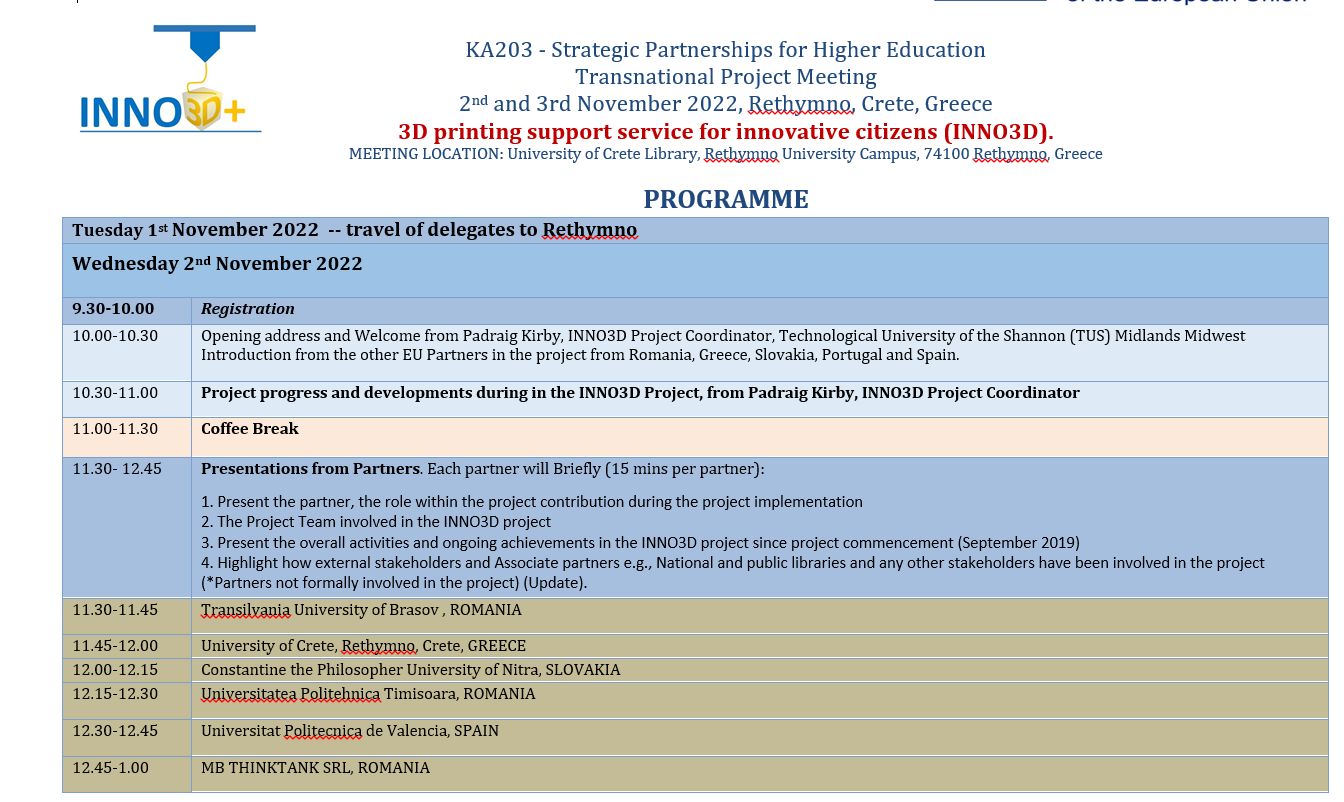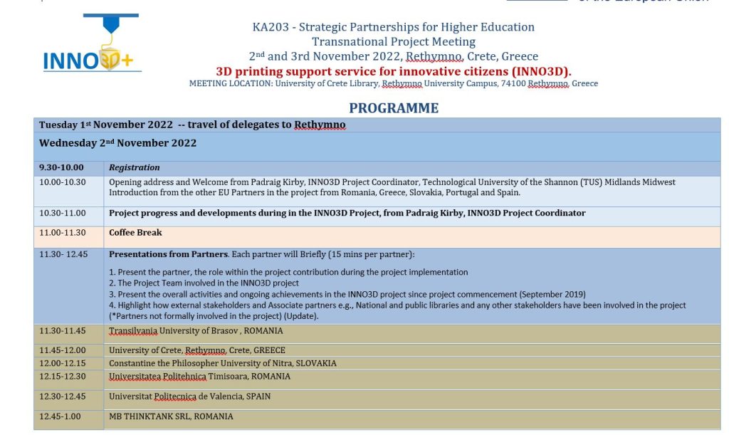 We participated in the Transnational Project Meeting (2nd and 3rd November 2022), held in University of Crete, Rethymno Campus, Greece