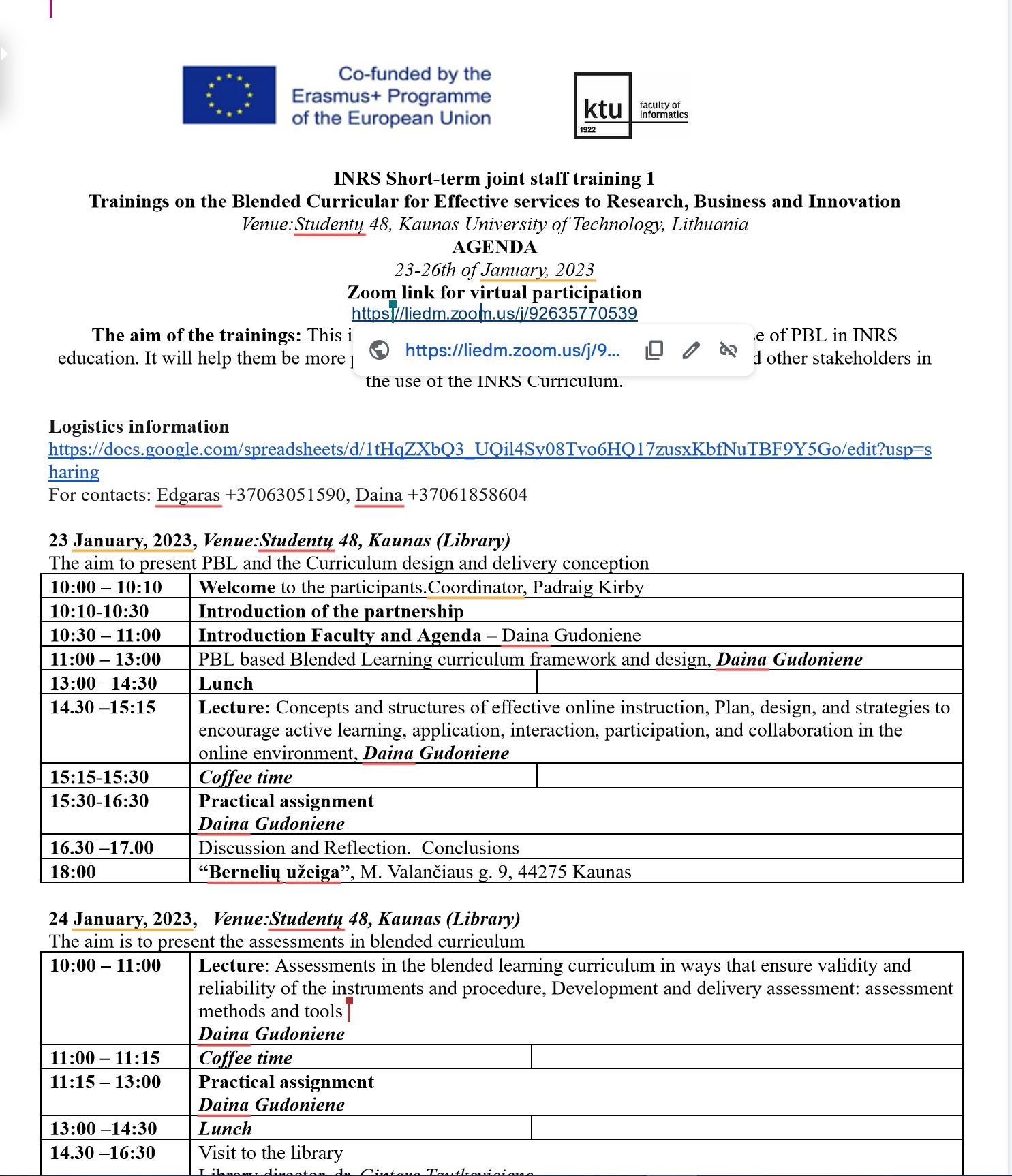 Today we begin the first of trainings on the Blended Curricular for Effective services to Research, Business and Innovation, hold at Kaunas University of Technology, Lithuania. From January 23th-26th.