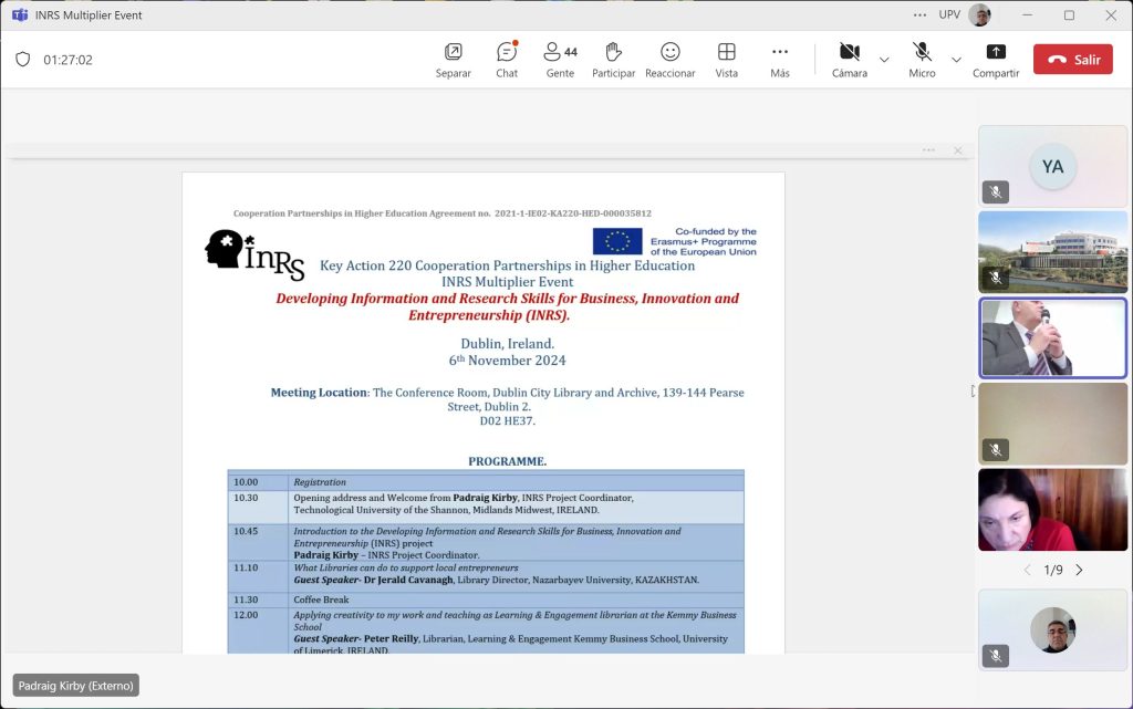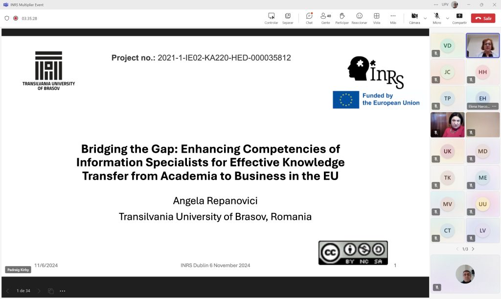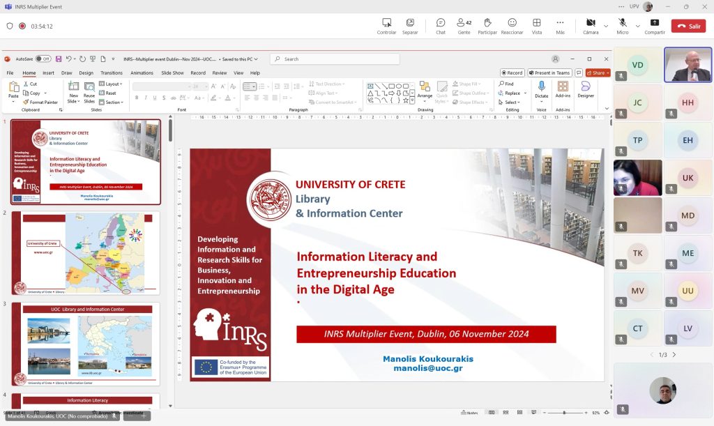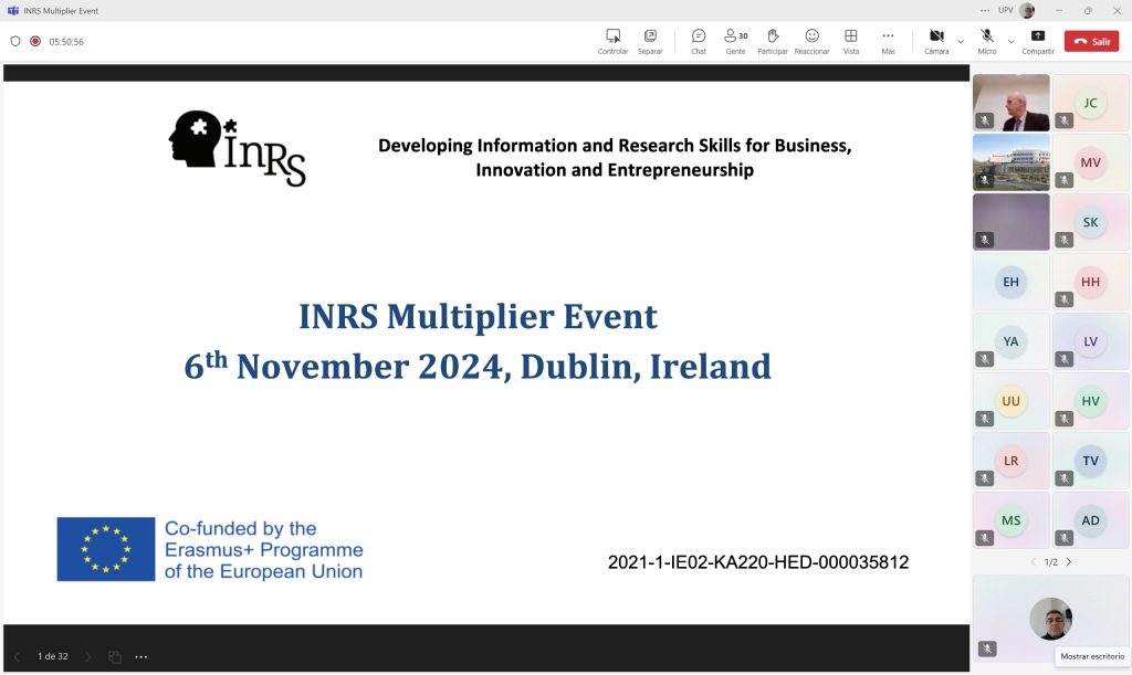 Today, 6 November, we participated in the online multiplier event of the INRS project organised by TUS. This event took place face to face at the Conference Room, Dublin City Library and Archive, 139-144 Pearse Street, Dublin 2. D02 HE37