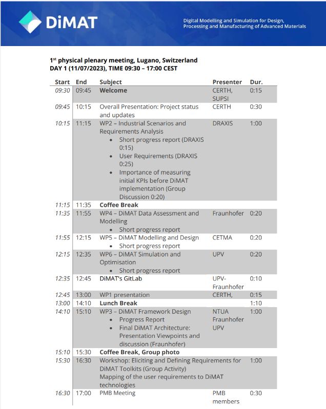 We attended the plenary meeting of the Dimat European Project, held at SUPSI (Lugano), on July 11th and 12th