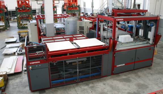 | Para la gran serie existen máquinas de moldeo secuencial con cavidades múltiples, sistemas automatizados de alimentación y transporte de la lámina y troquelado y apilado de las piezas | El proceso que se adapta a la fabricación de grandes piezas, como embarcaciones moldeadas en plancha de ABS con esloras de 4,70 m. o grandes bañeras (spa) en lámina de metacrilato |